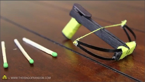 হ্যান্ডিম্যান গ্রান্ট থমসন আমাদের দেখায় কিভাবে একটি মিনি ক্রসবো তৈরি করতে হয় যা ম্যাচগুলিকে অঙ্কুর করে, কিছু popsicle লাঠি সঙ্গে, থ্রেড এবং দুটি চিমটি.