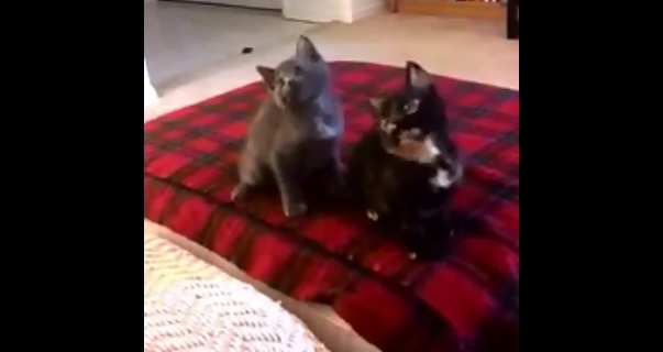 ডিজে স্নেক এবং লিল জন-এর 'টার্ন ডাউন ফর হোয়াট'-এর জন্য দুটি বিড়ালছানা।, তাদের মালিক দ্বারা একটি লেজার দিয়ে কোরিওগ্রাফ করা হয়েছে.