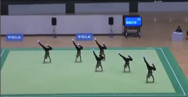 জাপানের আওমোরি স্কুলের রিদমিক জিমন্যাস্ট, 2009 সালে তাদের দেশের জাতীয় জিমন্যাস্টিকস চ্যাম্পিয়নশিপে একটি আশ্চর্যজনক সংখ্যা সম্পাদন করে.