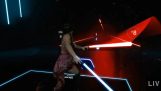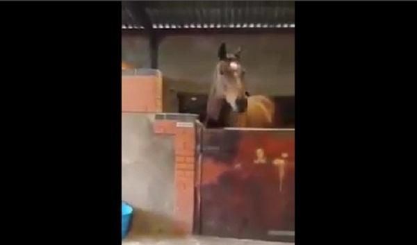একটি ঘোড়া সঙ্গীত উপভোগ করছে এবং বীটের দিকে মাথা নাড়ছে.
