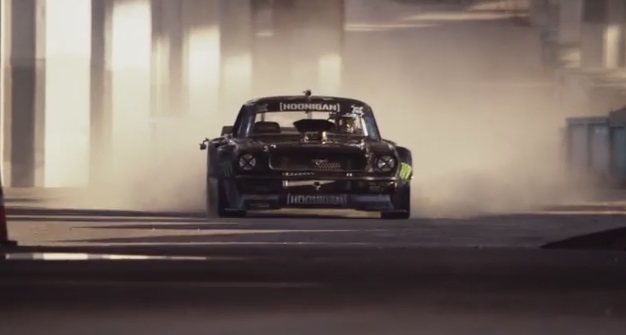 'জিমখানা' সিরিজের 7 তম অংশে কেন ব্লক, তিনি একটি 1965 854hp ফোর্ড মুস্তাং চালান, এবং লস এঞ্জেলেসের নির্জন রাস্তার মধ্য দিয়ে প্রবাহিত হয়.