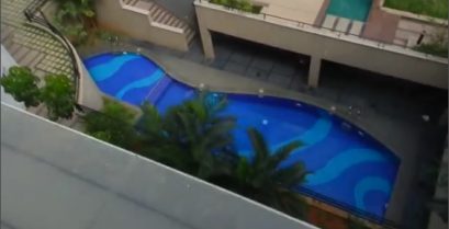 ২০ মিটার উঁচু ভবনের ছাদ থেকে লাফ দিচ্ছেন এক যুবক, গভীরতার একটি পুলে 1,5 মিটার.