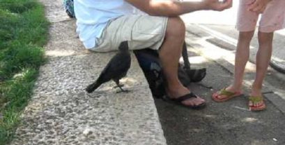 এই কাক খুব তৃষ্ণার্ত, এবং সে মানুষকে তার পানির বোতল খুলতে বলার চেষ্টা করে.