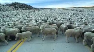 চিলির নাভারিনো দ্বীপে, একজন মেষপালক হাজার হাজারের সাথে (সংখ্যায় অজানা) তার ভেড়া.