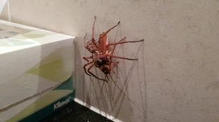 অস্ট্রেলিয়ায়, একজন লোক তার বাথরুমে একটি তেলাপোকা এবং একটি মাকড়সা খুঁজে পেয়েছে. সে তেলাপোকাটিকে ফাঁদে ফেলে মাকড়সার কাছে ফেলে দেয়, যা অবিলম্বে চিত্তাকর্ষক গতির সাথে তার শিকারকে আটকে রাখে.