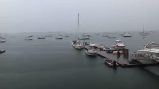 শনিবার, জুলাই 6, 2019, ম্যাসাচুসেটসের বোস্টনের কলম্বিয়া ইয়ট ক্লাব বন্দরে একটি পালতোলা নৌকা বজ্রপাতের দ্বারা আঘাতপ্রাপ্ত হয়েছিল. জাহাজের মাস্তুলে বজ্রপাত হল, স্ফুলিঙ্গ একটি ঝরনা কারণ.