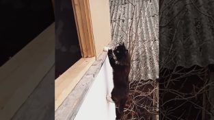 Vyjnytsia, ইউক্রেনে, একটি বিড়াল যখনই বাড়ি যেতে চায় তখন কিছু স্টান্ট করে. Ανεβαίνει στα λεπτά κλαδιά ενός δέντρου και στη συνέχεια κρέμεται με τα μπροστινά πόδια της από το περβάζι […]