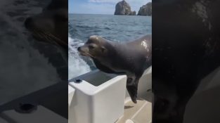 পেলিকানদের সাথে, একটি সীল একটি মাছ ধরার নৌকার উপর লাফ দেয় এবং ঠিক কোথায় দেখতে হবে তা জানে.