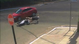 ব্রাজিলের প্যারাগোমিনাস শহরে, একটি স্কুটারে থাকা একজন মহিলা একটি গাড়ির সাথে ধাক্কা খাচ্ছেন৷, এবং তারপর একটি খোলা ড্রেনে পড়ে.