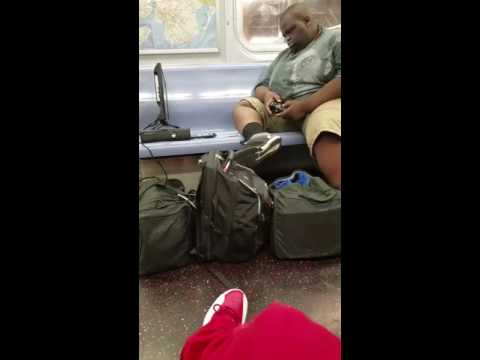 Muž hraje Xbox 360 na NYC metru