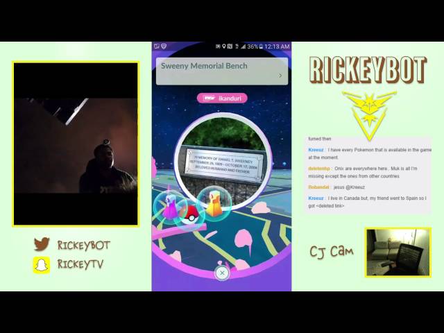 Noc neděle 18.září 2016, návazce s přezdívkou Rickeybot šel do Central parku New Yorku vysílat živě Pokémon hry Go pro předplatitele.