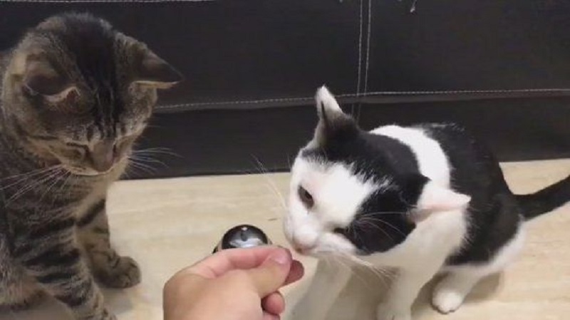 Chcete-li požádat o jídlo, dvě kočky v Japonsku bude muset stávku zvon s nohou.