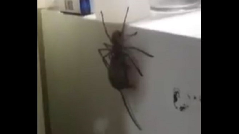 Soused ho pak jel do svého domova, kde pavouk lovec (Lovecký pavouk) chytil myš. Velkou hmyzu chůzi na chladničce pevně držel malého savce s čelistní kosti z.
