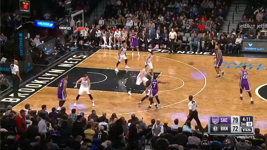 V nedávném utkání NBA mezi Sacramento Kings a Brooklyn sítě, Matt Barnes zdaří bez chce za tři body, ve své snaze vytáhnout ASTs pro přibíjení.