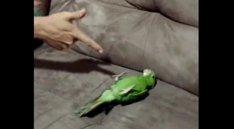 Když člověk pořídí s prsty jeho papouška, pták se ihned změní hlavou vzhůru a předstírat mrtvého.