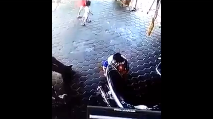 V Thajsku, muž řeší na motorce, Zatímco dvě malé děti hrají za ním. najednou, otec se změní, když slyší auto a uvědomuje si, že vozidlo pohybuje nekontrolovatelně k dětem.