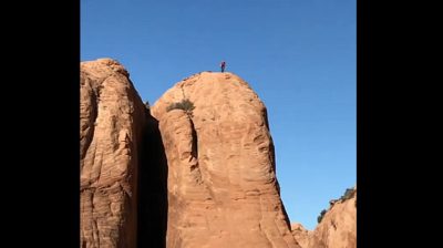 V poušť Moab (Utah, Spojené státy americké), biker Kyle Mears sestupuje z extrémně strmý svah. Na kolo Orbea Rallon, Kyle Mears je téměř kolmá ke straně útesu s výškou přes 30 metrů.