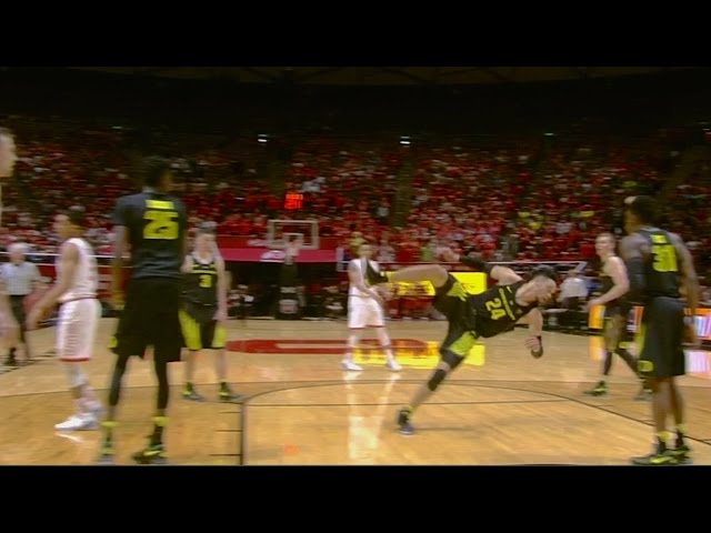 Přizpůsobte vysokoškolský ligu ve Spojených státech mezi Oregon a Utah, hráč Oregon Dillon Brooks dělá velkolepou flopingk a zasyčel publikem. Brooks byl obviněn z obranného zákroku.