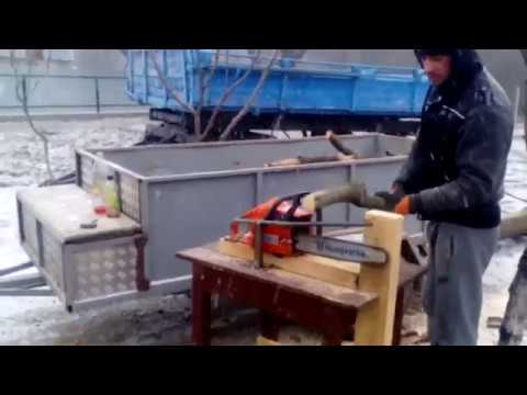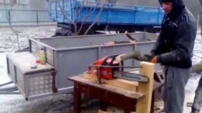 Muž měl expni představu, s motorovou pilou, pro rychlé řezání dřeva.