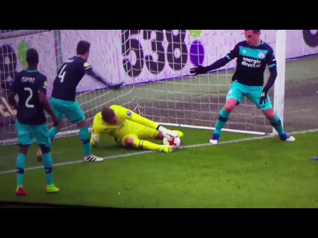 Minulou neděli během fotbalového zápasu v Nizozemsku mezi Feyenoord a PSV Eindhoven, brankář PSV, Jeroen Zoet, velkou chybu, která stála jeho tým vítězství.