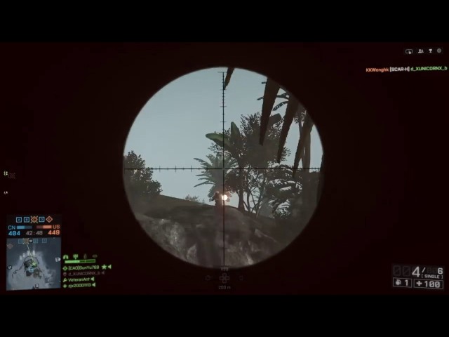 Během online bitvy ve videohře „Battlefield 4“, hráč trolarei sniper vyhnout kulkám.