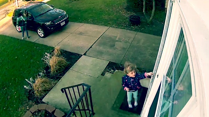 Zatímco on se vrátil ze školy, malá dívka otevřel dveře domu a učinit neobvyklý jízda vzduchu pomocí vítr.