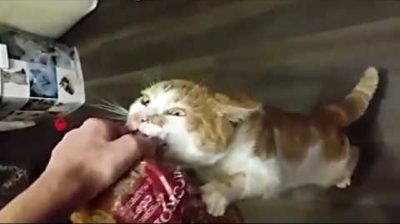Boris kočka krádež chleba a odmítá dát ji na majitele,.