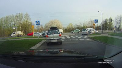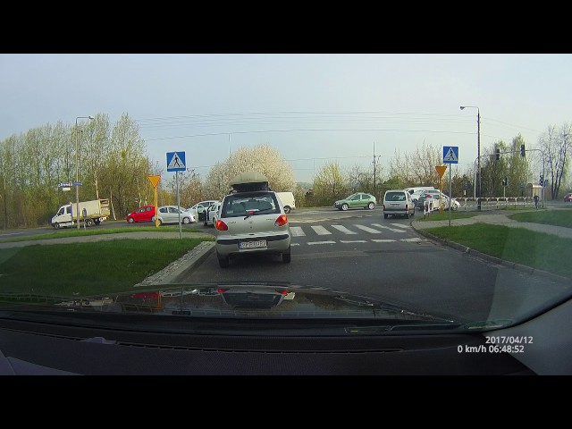 Na křižovatce v Polsku, Žádný z ovladačů s prioritou nechá není předat řidiči od kolmé silnice. Muž ale našel řešení problému. Vystoupí z auta a rychle běží stisknout tlačítko na semaforu pro chodce…
