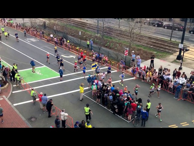 Technika, kterou organizátoři aby chodcům Beacon Street, během Bostonský maraton ve Spojených státech.