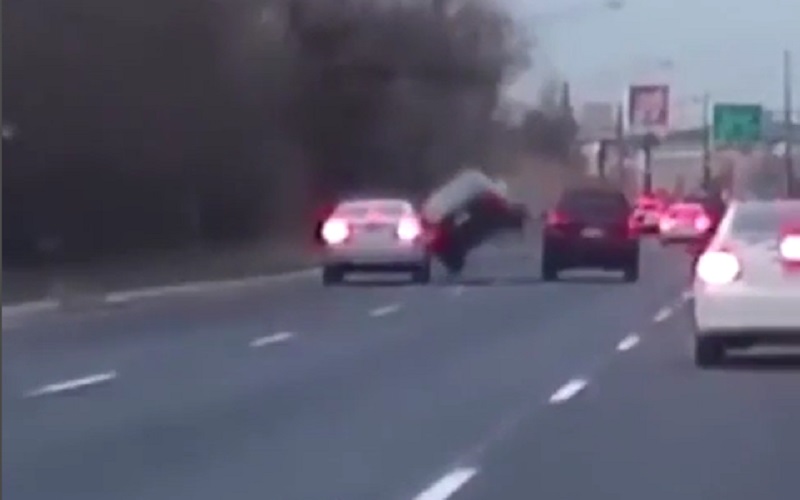 Bezohledný řidič jede vysokou rychlostí na dálnici ve Spojených státech, Díky nebezpečné manévry a předjíždění. Kurz však skončí špatně, jak se snaží udělat předjíždění mezi dvěma auty.