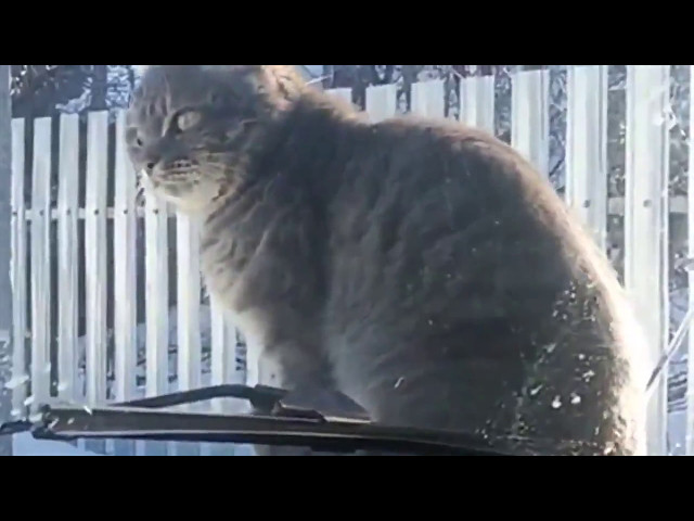 Kočka v Rusku odmítá, aby sestoupil z kapotu auta. Řidič používá stěrač a klakson, ale nezdá se, že by zájem. uvolněný, se pomstí řidiči tím, že před odjezdem zanechá „suvenýr“..