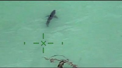 Šerifa posádka helikoptéry varoval skupinu kolesových strávníků se dostat ven z oceánu poté, co si všímat více než tucet velkých bílých žraloků podél jižní pobřeží Kalifornie.