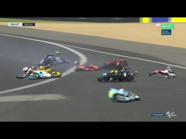 V neděli 21. května 2017 ve francouzské Grand Prix v Moto3 (125-250 krychlový Pořadí), Mnoho jezdců padl na druhé straně kvůli oleji na trati. Působivé obrázky ukazují řidiči klesá jako mouchy.