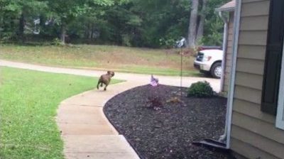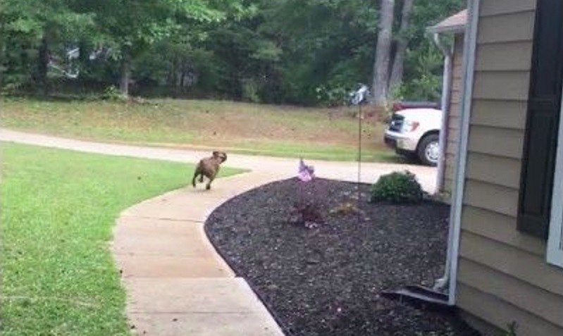 Zeus, boxer plemeno psa, běží při vysoké rychlosti v zahradě a kolize s zaparkovaného auta. Majitel ho vzal k veterináři, a to bylo v pořádku, zdraví.