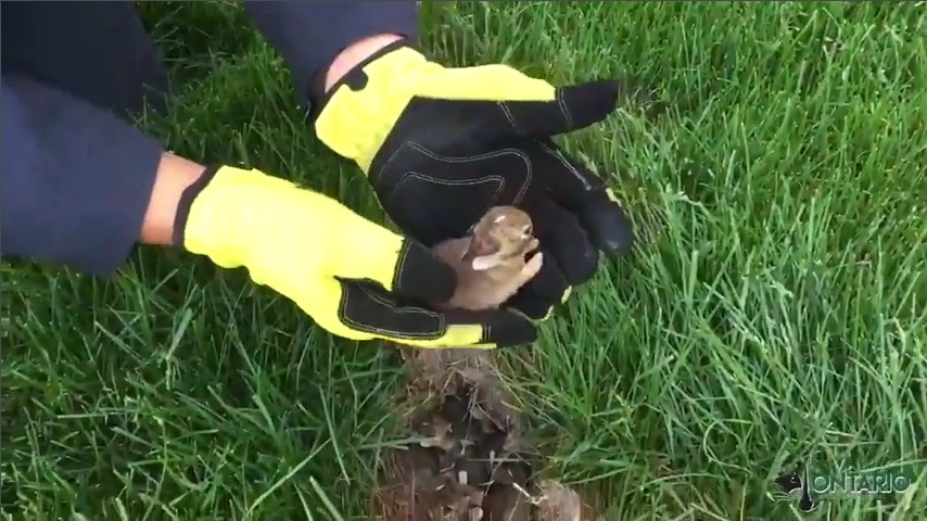 Co není uvedeno v popisu, je, jak tento muž, vysvětluje, že musíte být opatrní nařezané strojů trávy na zahradě (ti, kteří mají).Για να μην τα σκοτώσουμε. Όσοι δεν το γνωρίζουν.«Απομάκρυνση Άγριας Ζωής του Οντάριο», vpravo dole logo. https://www.ontariowildliferemoval.ca/Publikace z NDT (Sociální média): http://www.cbc.ca/news/canada/hamilton/watch-for-baby-rabbits-1.4157084https://www.facebook.com/OntarioWildlifeRemovalInc/videos/342127946204429/https://www.facebook.com/OntarioWildlifeRemovalInc/posts/350653848685172https://www.ontariowildliferemoval.ca/blog/
