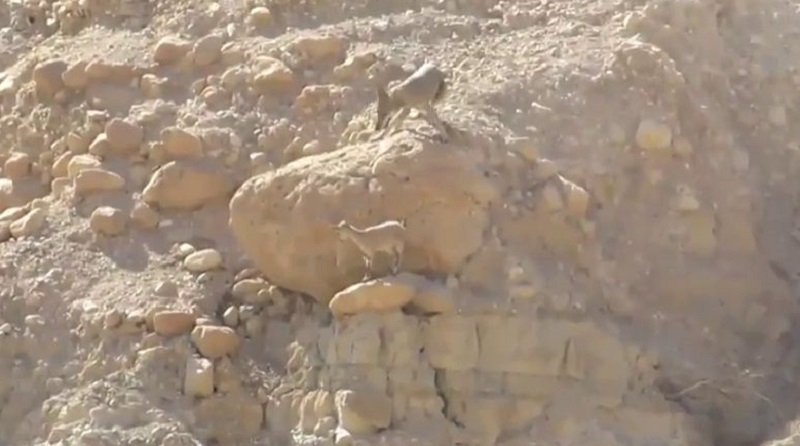 Mladý kozy se snaží uniknout z vlka, kteří loví na skalnatém útesu v jižním Izraeli. Koza dělá neustále přepínání mezi kameny, aby se pokusili zachránit, ale hladový vlk je velmi tvrdohlavý a nakonec chytí svou kořist. Tvrdý zákon přírody.
