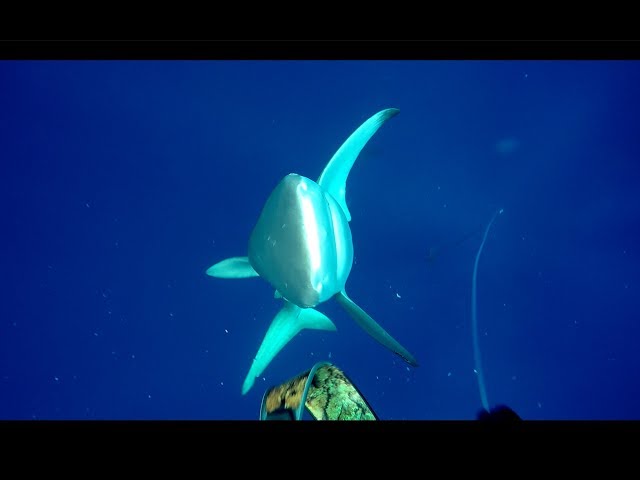 Vody mezi Novým Zélandem a ostrov Ascension, odvážný speargun chytí tuny, ale dva žraloci, kteří přičichl svou kořist útok.