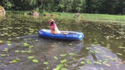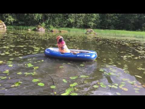 Funny dinosour krojový léto dělá salta plavání rubberboat jezero skok