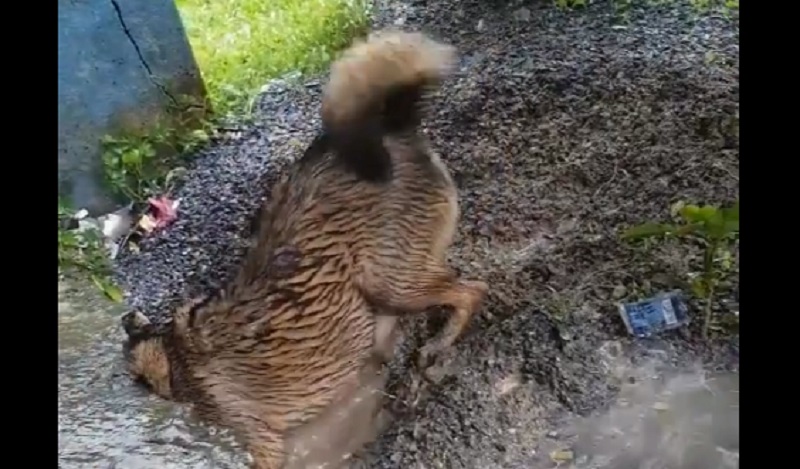 S pomocí člověka, pes jim naslouchal kopat pod betonový obrubník a uvrhnout do díry vytáhnout malé. Po některých umělých dechů, štěně zabočili.