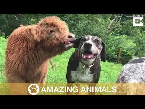 A jejich roztomilé fotografie chlupatý skot žije po boku jeho psí kamarádi z něho učinily sociální mediální senzace.
