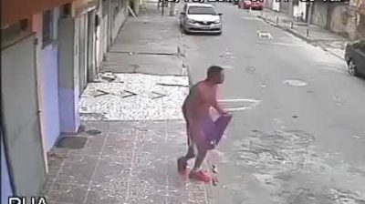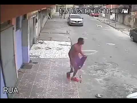 Pes se rozhodne učinit svou činnost v mužském zad, sedící na chodníku a je zaneprázdněn s jeho mobil.
