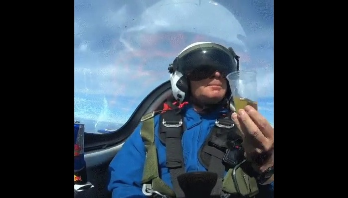 Pilot zjistí, vynalézavý způsob, jak naplnit svou sklenku, Když letadlo otáčí.