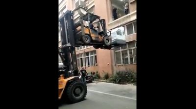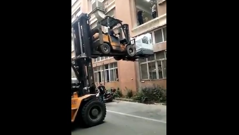V Číně, pracovníci mají nápad postavit malou vysokozdvižný vozík na větší, navrženy tak, aby nést stroj v prvním patře budovy. Bohužel, patent nefungoval.