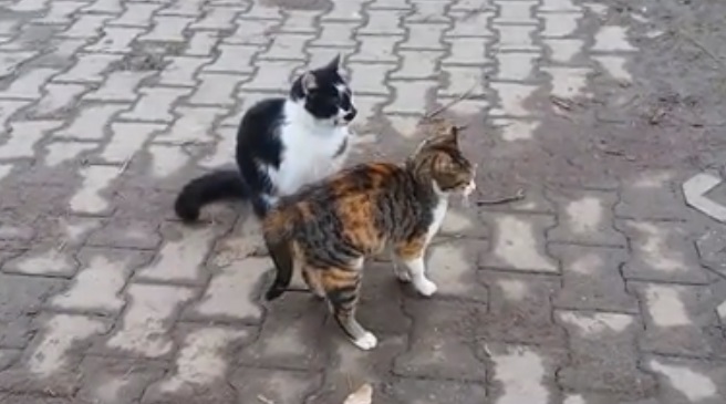 Kočka honí kočku a dělá laskání, jejichž cílem je spojit se s ním. Kočka nezdá tak, aby odpovídaly, a to bude platit!