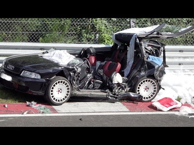 Okruh Nürburgring v obci Nürburg Německo, Jedná se o okruh, kde někdo může běžet s vozem, proti jakékoliv množství. Toto je sbírka kolizí a havárií na trati během 2017.