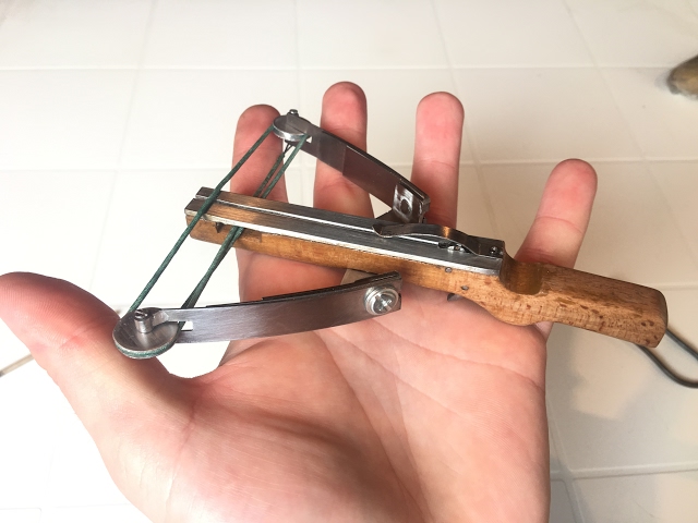 Náš uživatelsky Raduka ukazuje konstrukci ručně malého kovového kuše.