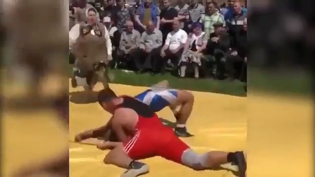 Během řecko-římském zápase v Turecku, matka atleta vstoupí do hřiště zasáhnout soupeře svého syna.
