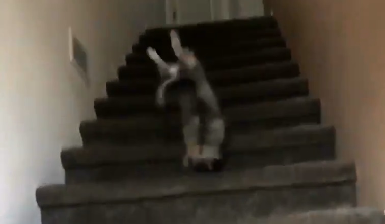 Arizona ve Phoenixu, štěně klesá vzrušením po schodech domu, aby se rychle dostat šéfa. Ale malý pes ztratí rovnováhu a bude dělat nějaké kotrmelce v posledních krocích. Naštěstí není utrpěl sebemenší.