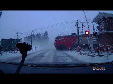 Riskantní situace na vlakovém přejezdu v Rusku. Na nahrávce, můžete vidět, jak bariéry zvýšit přechod a odstranit kovové bariéry, semafor stále bliká červeně. Vlak dává signál před křížení silnice. Po průjezdu vlaku jsou brány zavřené, a brzy se opět otevřely. Naštěstí, nehoda na křižovatce se nestalo.