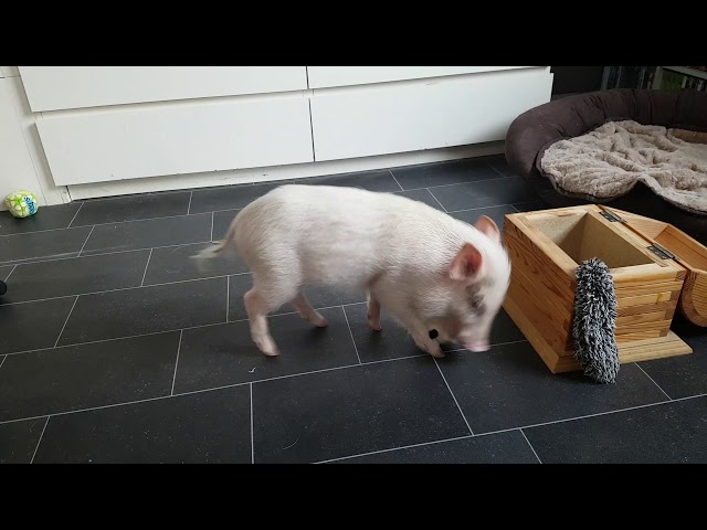 Pavel, trpasličím prase, Naučil se shromáždit své hračky a umístit je v krabičce.